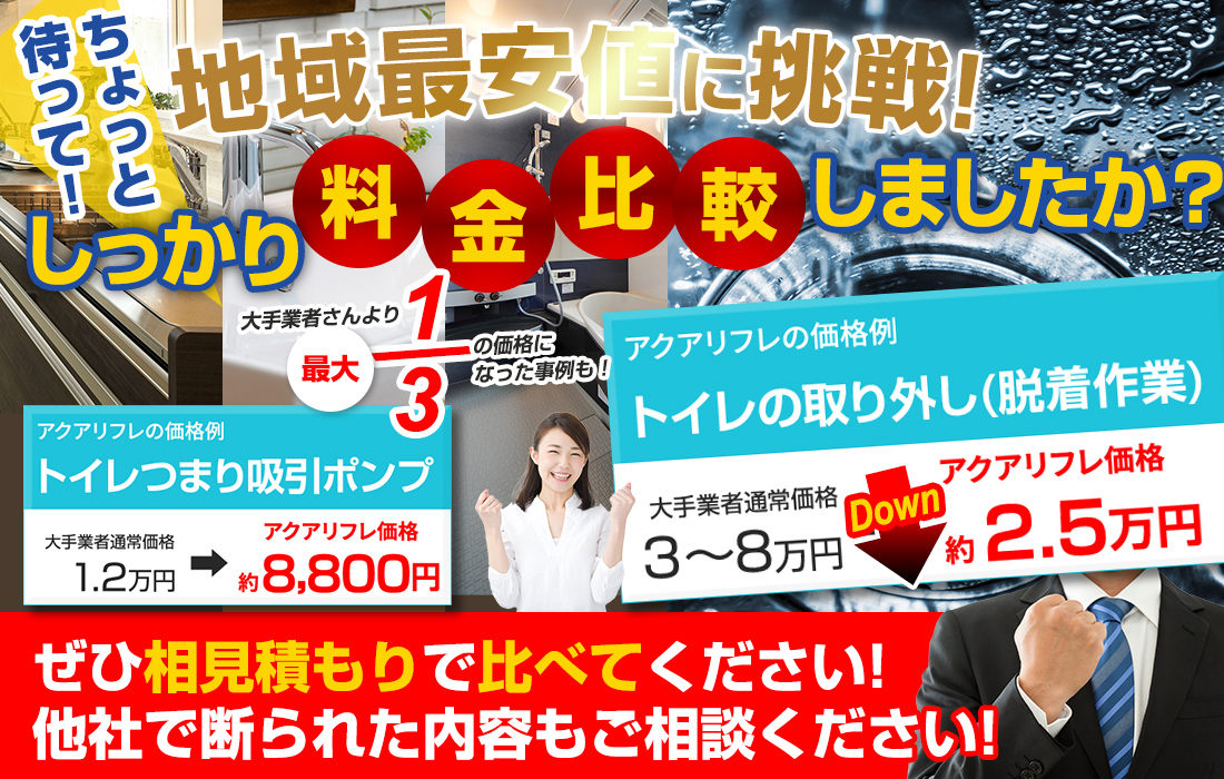 他者には負けない価格設定と高い技術力、安心の自社施工でみなさまのお困りごとを解決いたしますので、安心してお任せください。